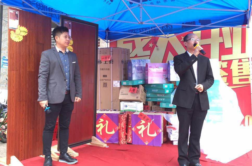 2016年11月9日,福人地板將樂專賣店盛大開業,雖然天空飄起蒙蒙細雨,但是依舊抵擋不了將樂人民的熱情,其火爆的場面攪熱了2016年疲軟的建材市場,給漸冷的初冬帶來一絲暖意。中林福人銷售總監石開洪、福建大區經理洪鼎忠、福人地板福州福到萬家協會各精英、中林福人市場部、福建各區域經理等到場慶賀,福建電視臺《完全家裝》欄目全程報道。